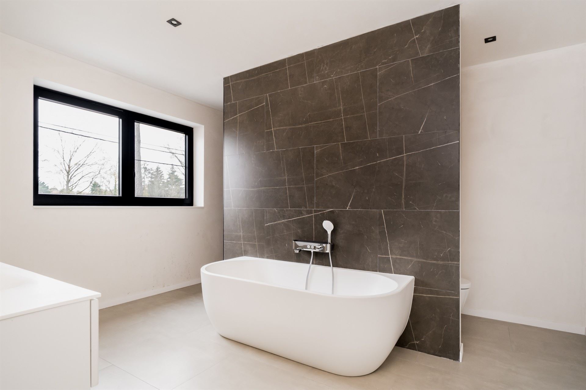 The2nd bathroom is also stylishly finished and features a walk-in shower, a double sink, a bathtub and a toilet, perfect for the whole family. In addition, there is a separate toilet in the night hall for added convenience.