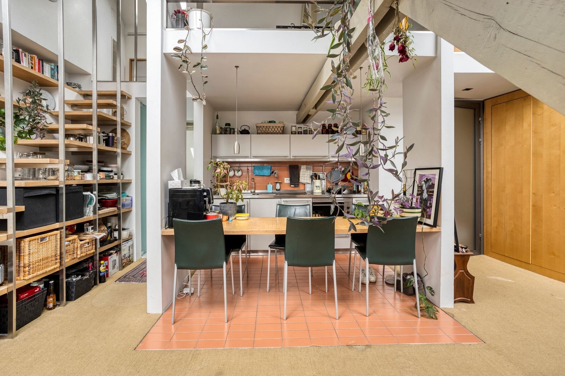 The mezzanine floor offers a guest toilet and laundry room.