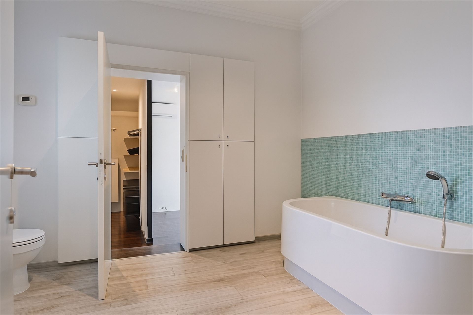 At the center of the house is a top-notch kitchen with dining area and cozy sitting area with fireplace. Here you will enjoy a soothing view of the unique garden setting – a green oasis with large sun terrace and direct access to the spacious garage.