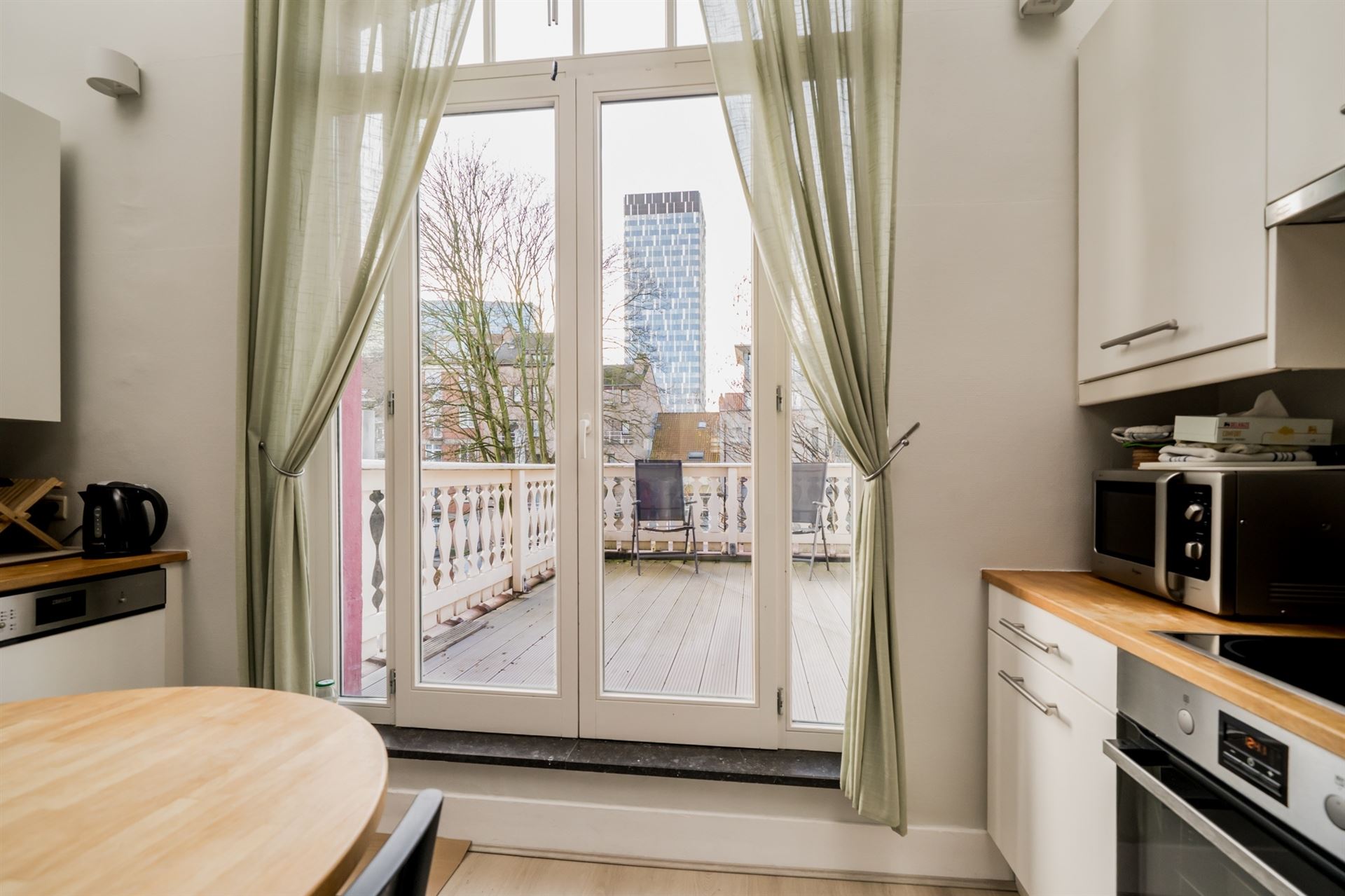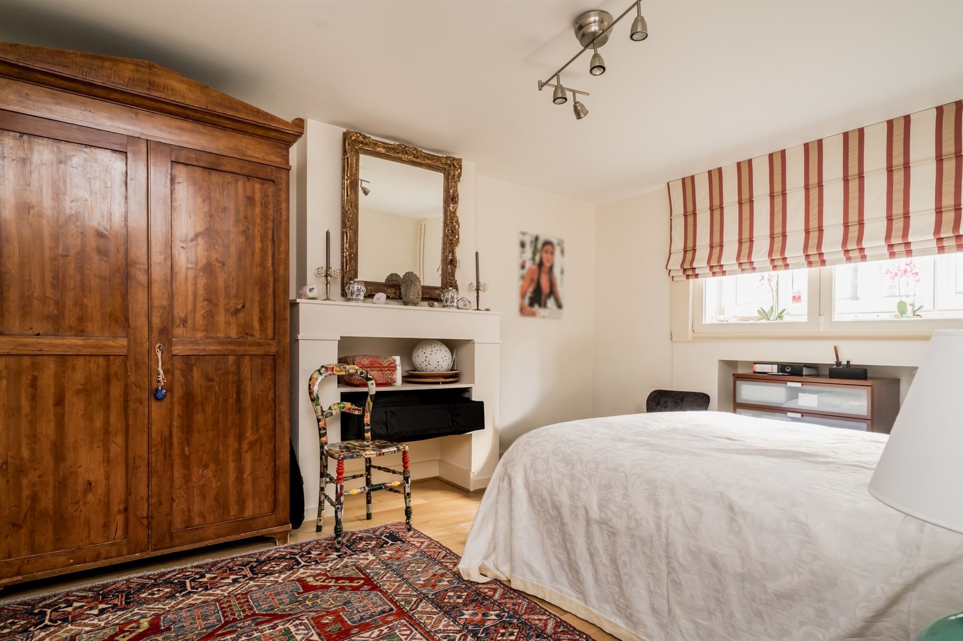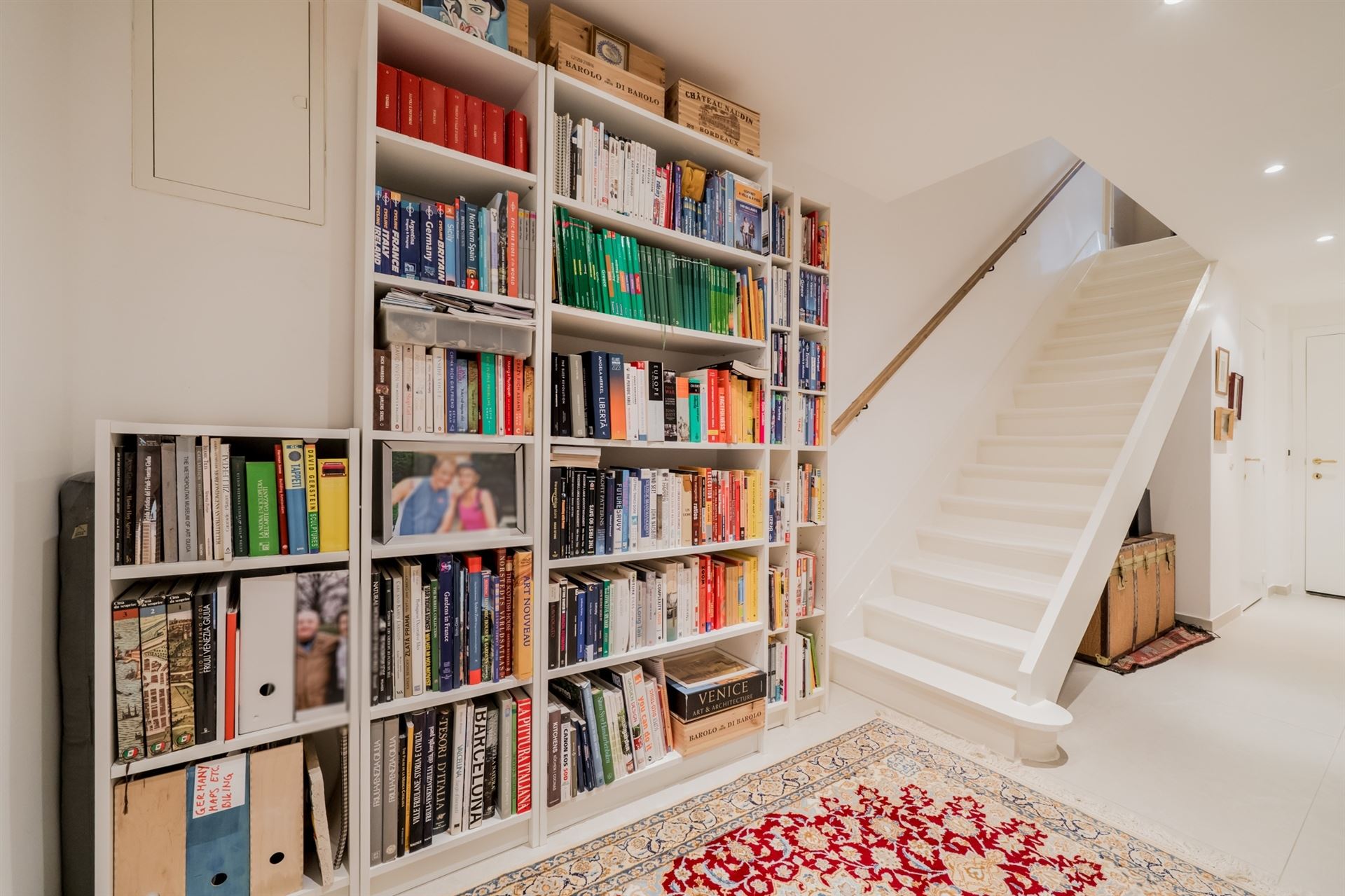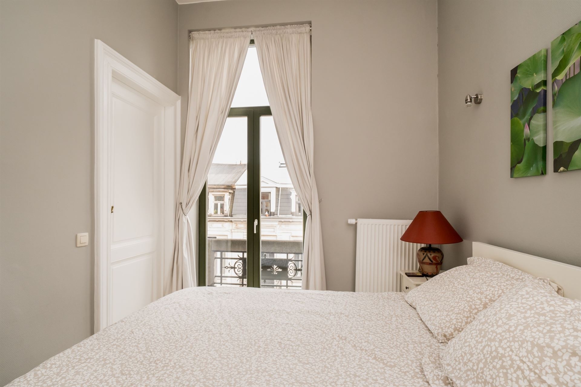 The property first features a spacious duplex apartment of approximately 176m² gross, located on the bel floor and semi-basement level. The bel floor offers three magnificent consecutive reception rooms with high ceilings and authentic character features. These spaces are currently arranged as an elegant living room, a fully equipped open-plan American kitchen with dining area and access / views over the south-facing garden (+/- 120m²). The front room facing the street can serve as a dining room and is officially recognized as a bedroom.