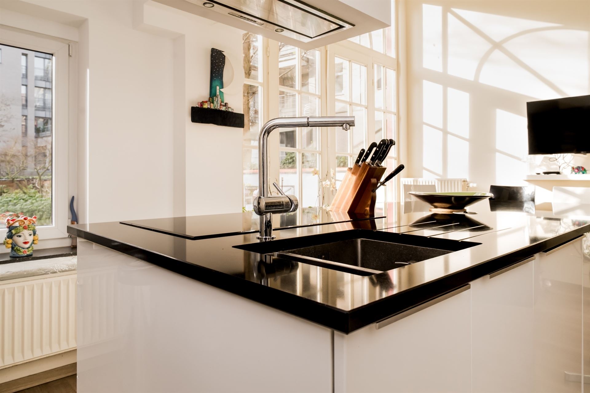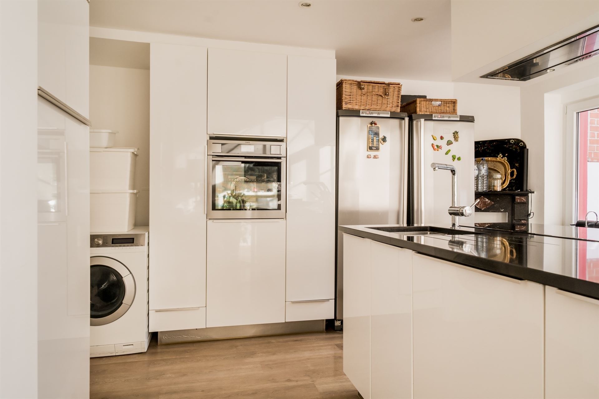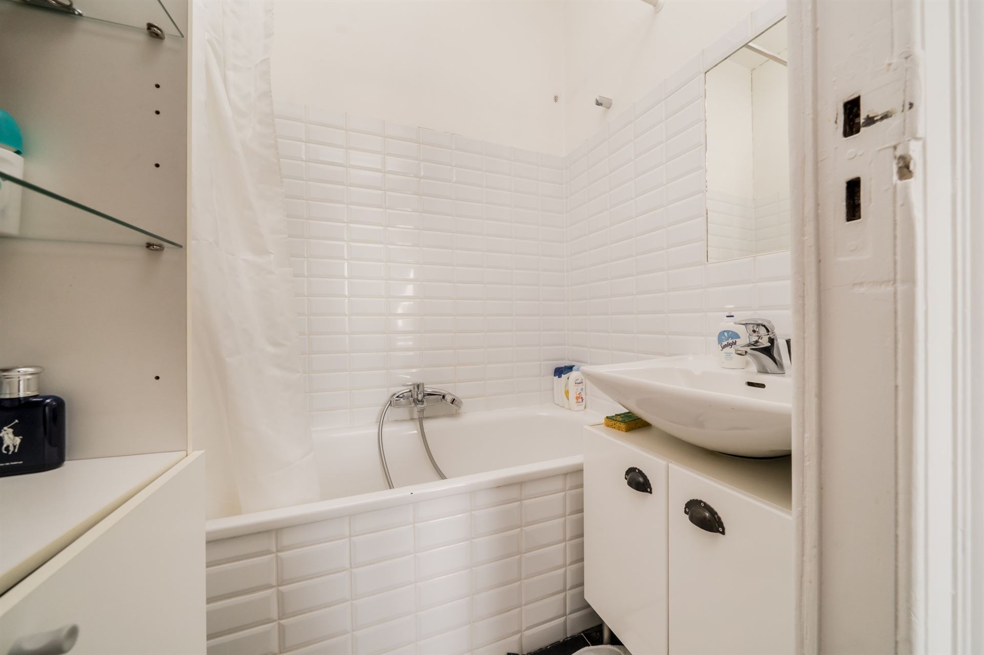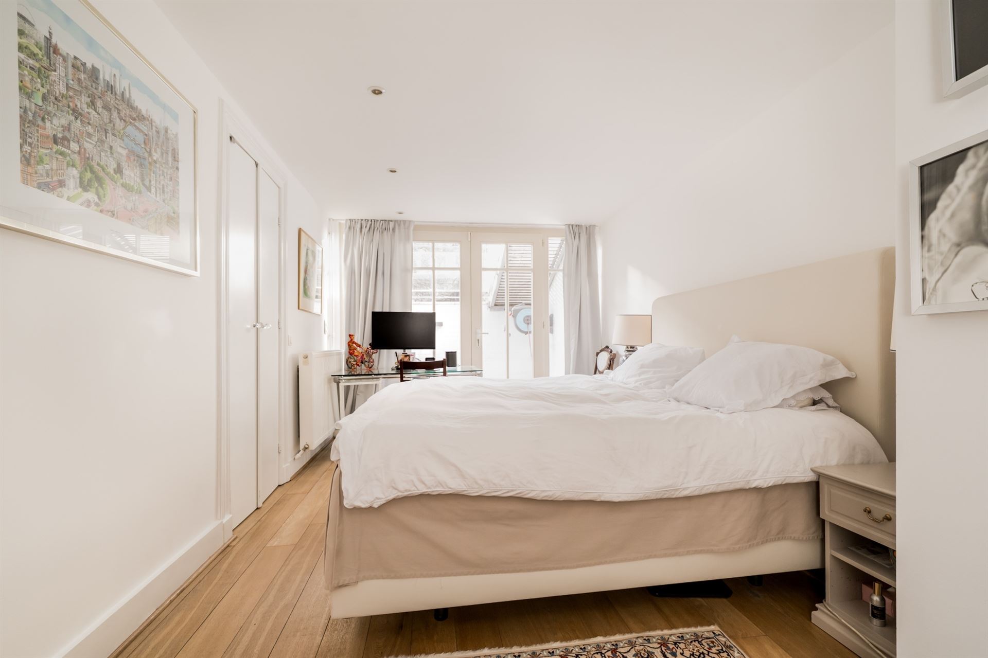 The property first features a spacious duplex apartment of approximately 176m² gross, located on the bel floor and semi-basement level. The bel floor offers three magnificent consecutive reception rooms with high ceilings and authentic character features. These spaces are currently arranged as an elegant living room, a fully equipped open-plan American kitchen with dining area and access / views over the south-facing garden (+/- 120m²). The front room facing the street can serve as a dining room and is officially recognized as a bedroom.