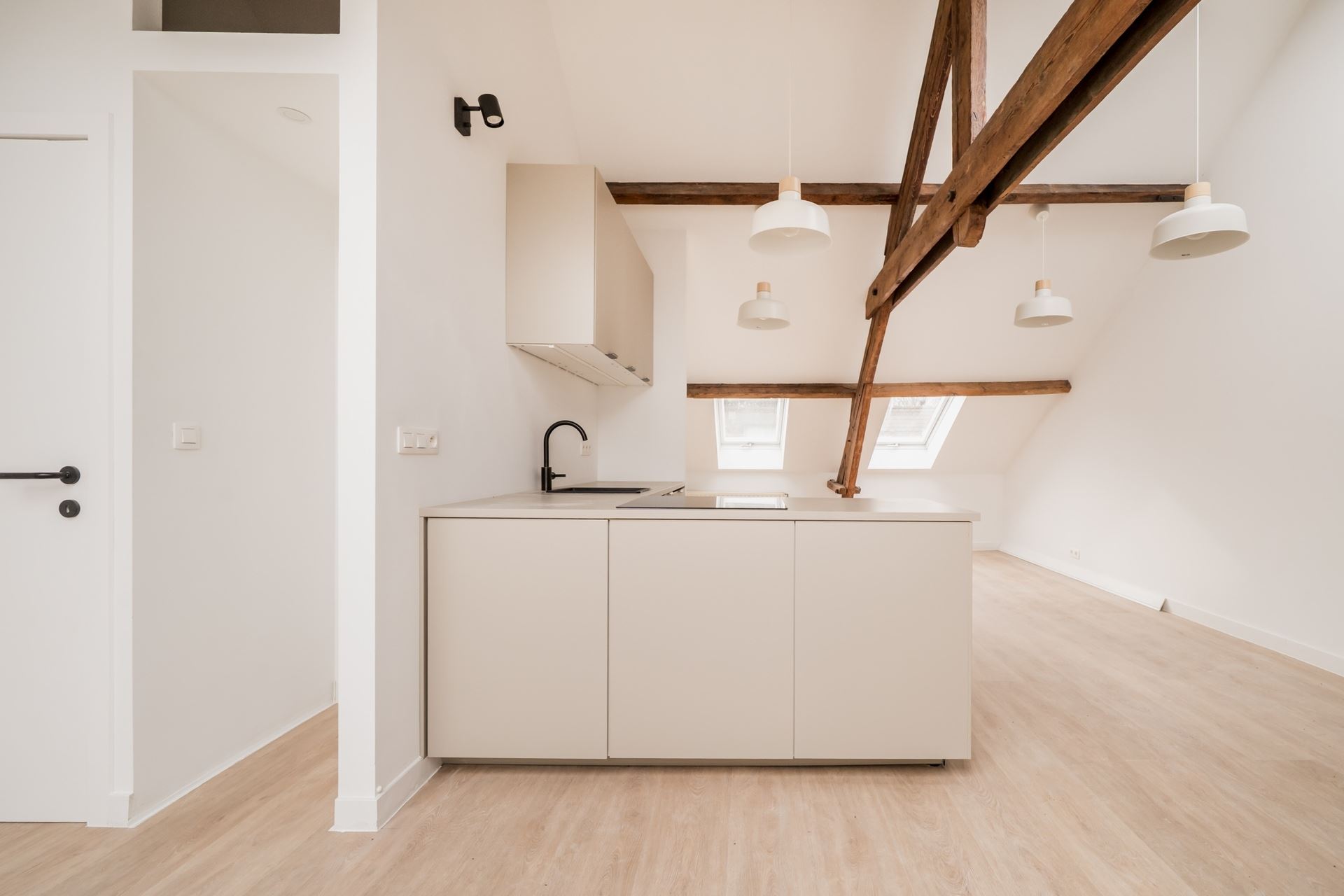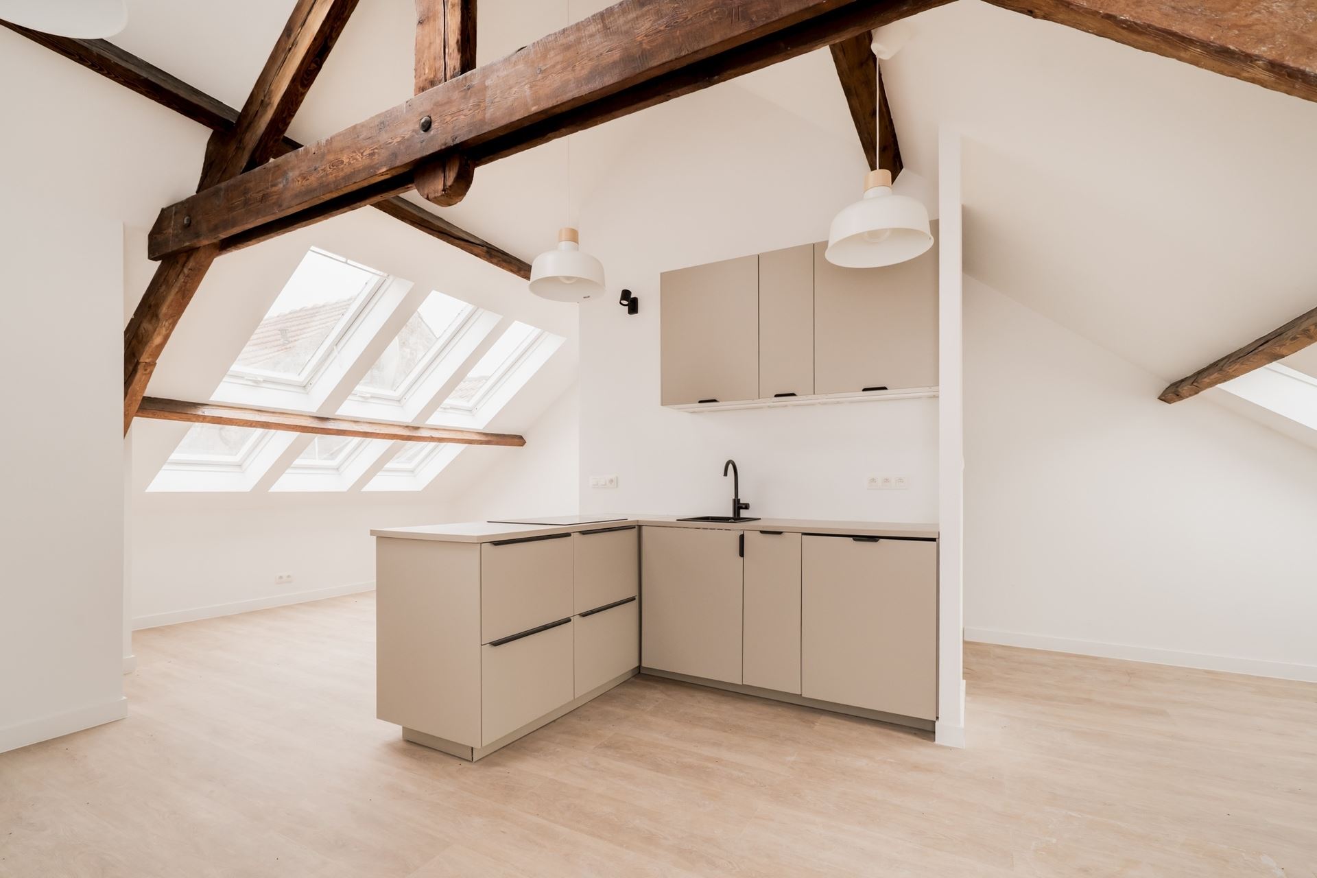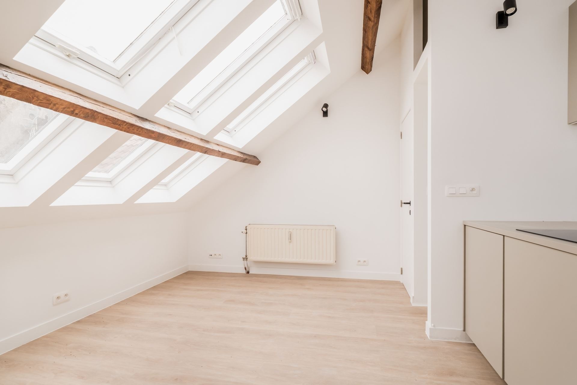 The third and top floor features a charming and comfortable converted attic of approximately 45 m², ideal as a studio, guest suite or additional bedroom. It includes a kitchenette, shower, sink and a separate toilet. Wooden Velux roof windows with double glazing provide plenty of natural light.