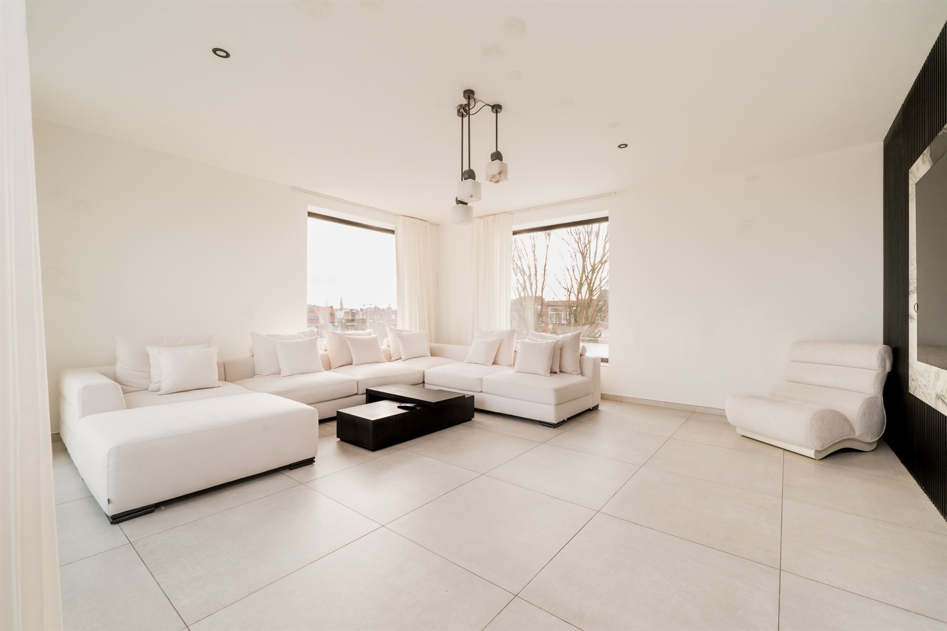 You enter the penthouse through the house elevator with a personal code. The hall with guest toilet takes you into the 1st part of the living room. This part is arranged with a modern kitchen with island on the left and a dining room with lots of light on the right. Subsequently, the living space with the lounge forms a beautiful whole. The 1st terrace overlooks the Pennepoel Park and thus has a nice green view.
