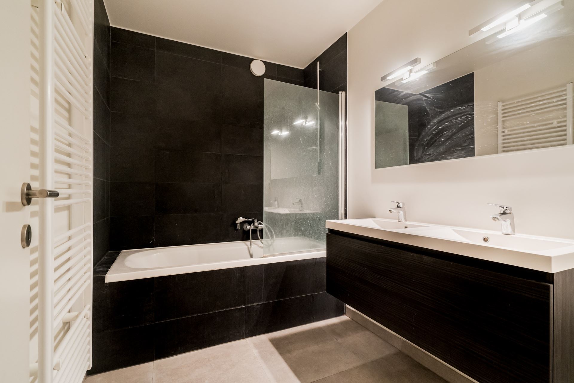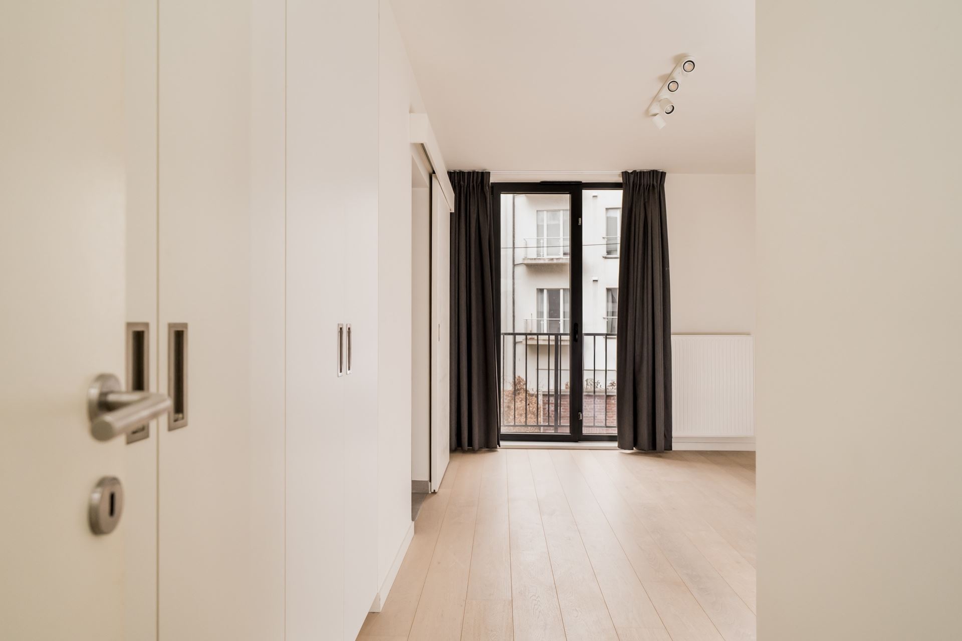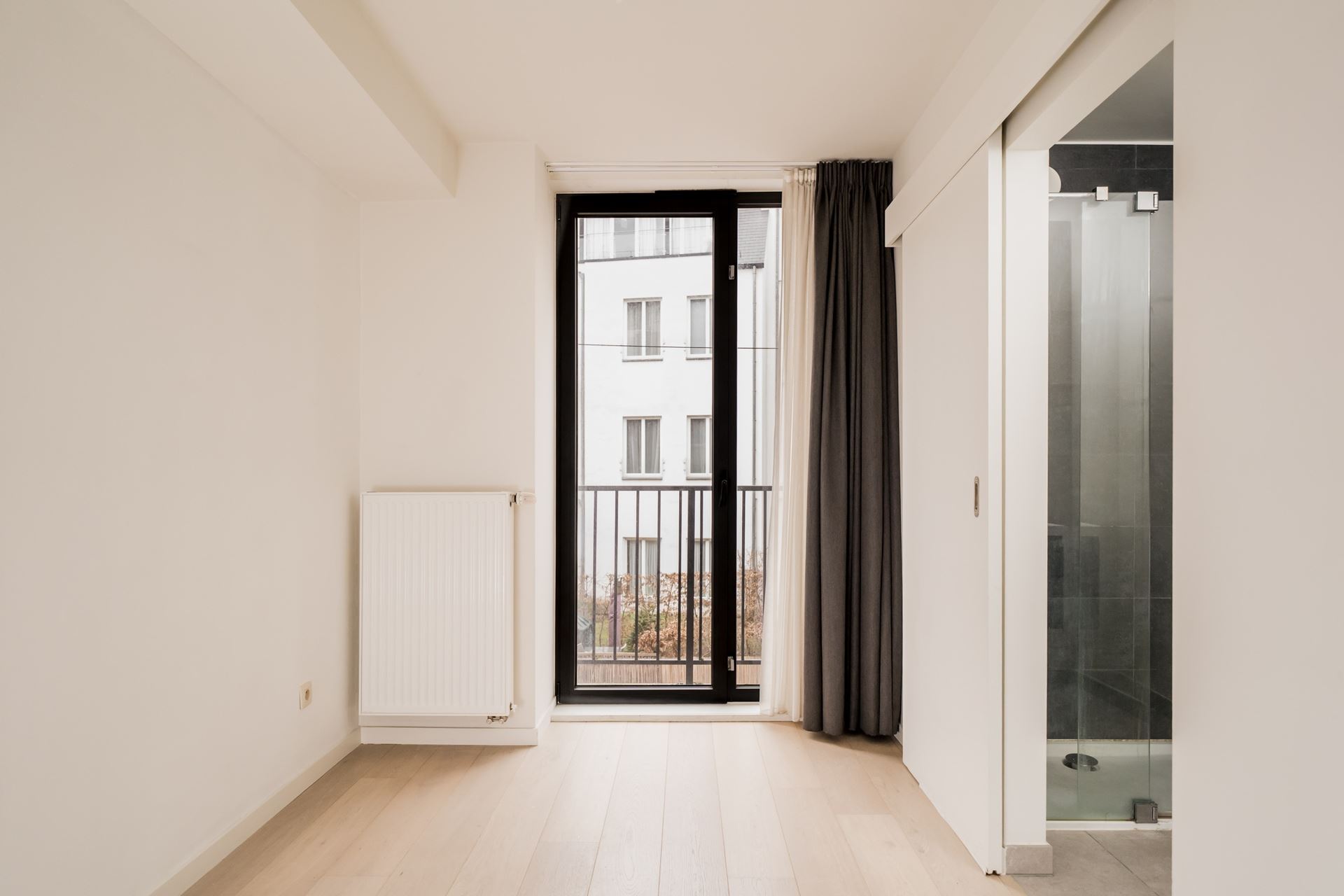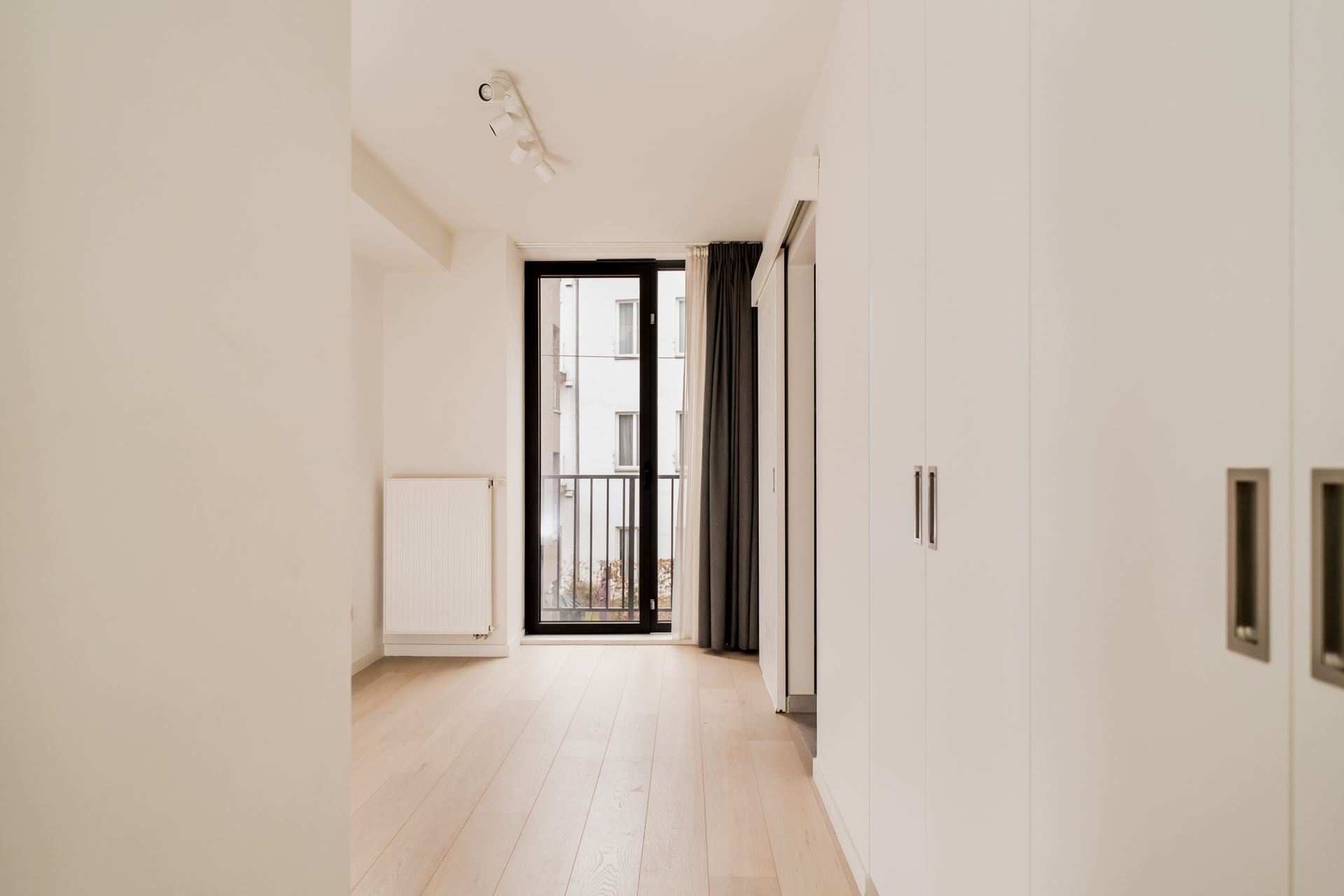 Beautiful, recent 3 bedroom duplex apartment on the ground and +1 floor, situated in a very good location in the European district. Spacious entrance hall with checkroom and separate toilet leading to a large, bright living space with adjoining fully fitted kitchen. Terrace with adjacent private garden (+/- 50m²). Upper floor landing with separate toilet. 2 bedrooms (15m² & 12m²) with shared shower room and a spacious master bedroom (26m²) with dressing and bathroom with bathtub and double sink. Private cellar. Parking space to purchase (+ € 35.000). Very good location in a quiet street, walking distance to public transport, European institutions, Metro, shops and restaurants.