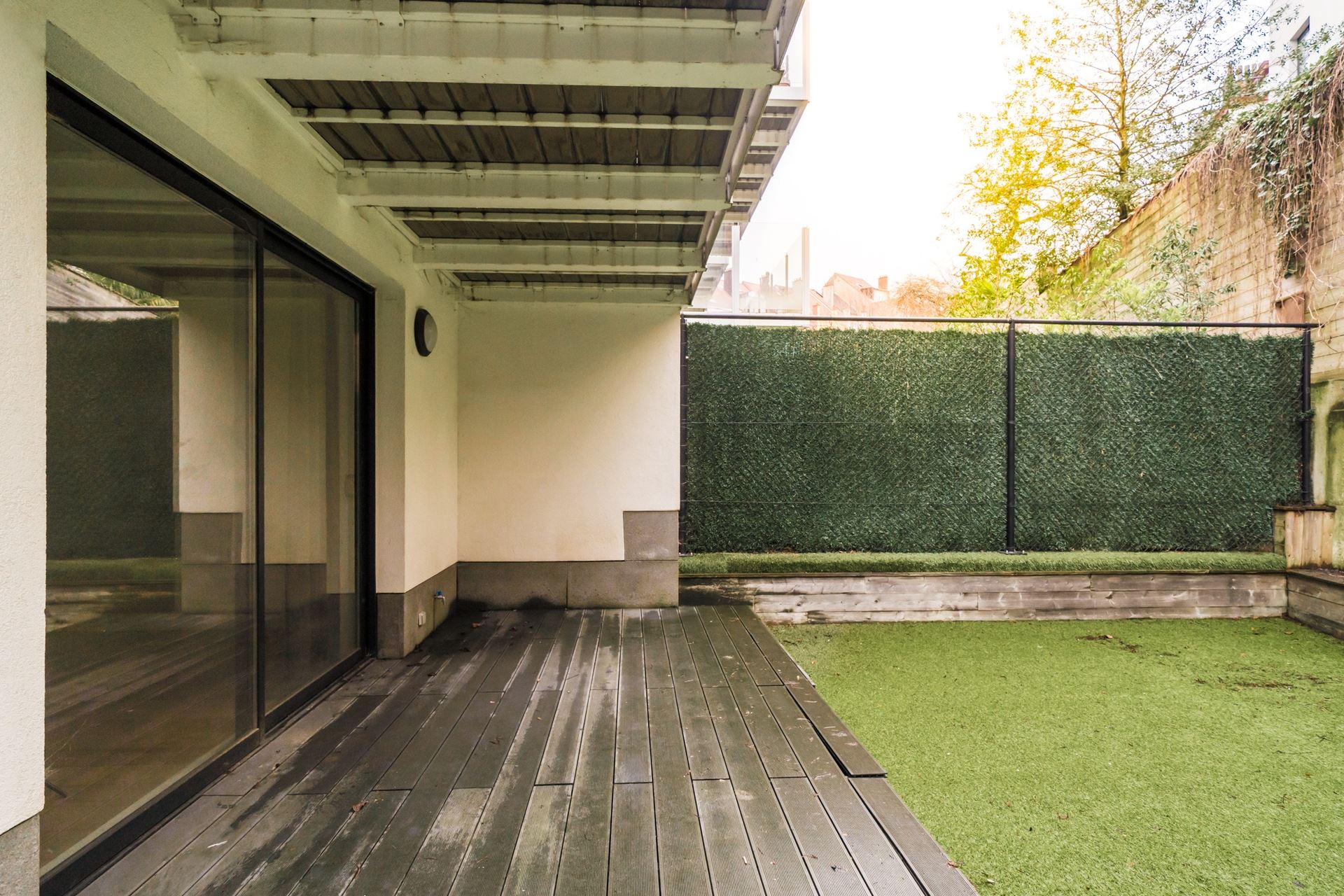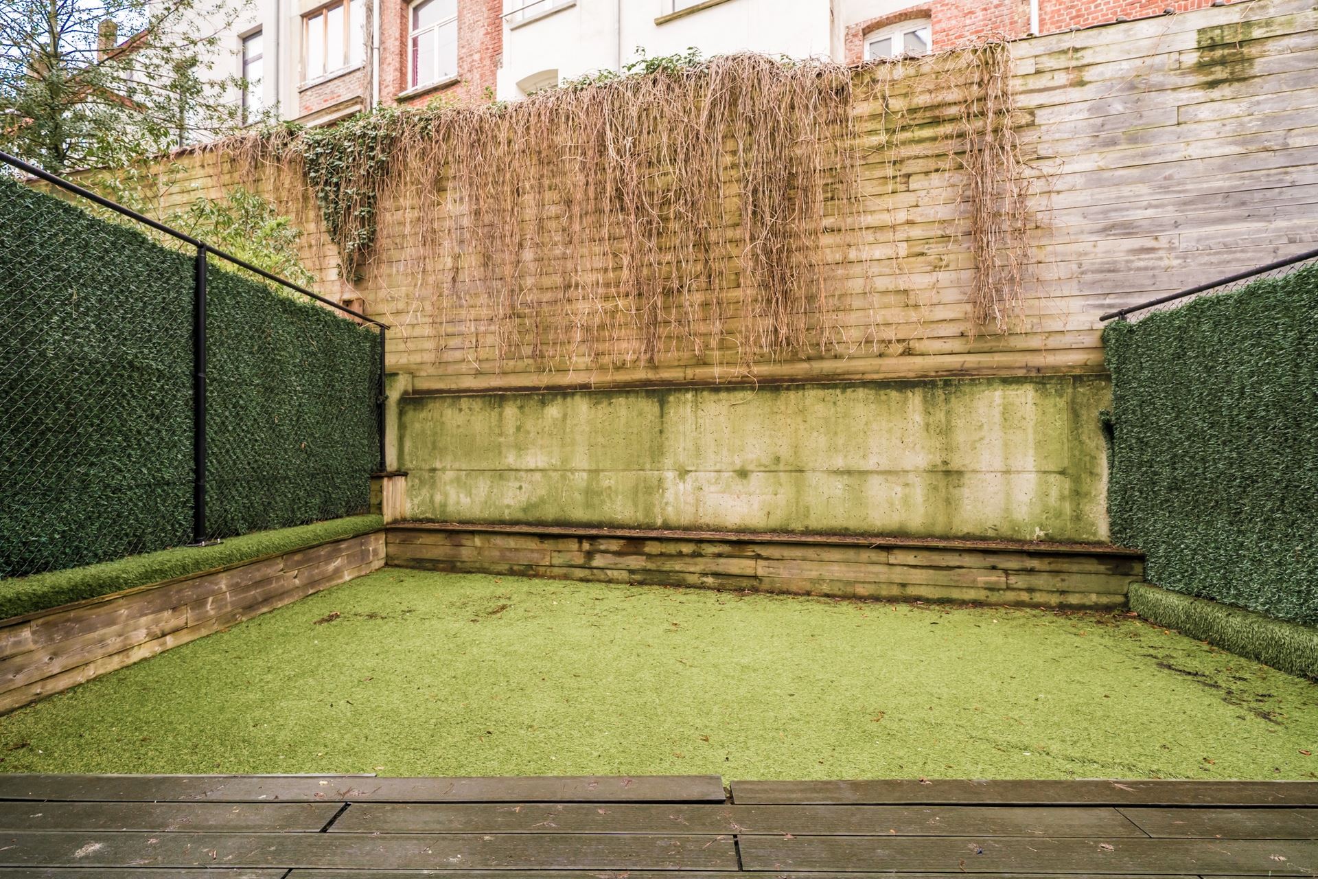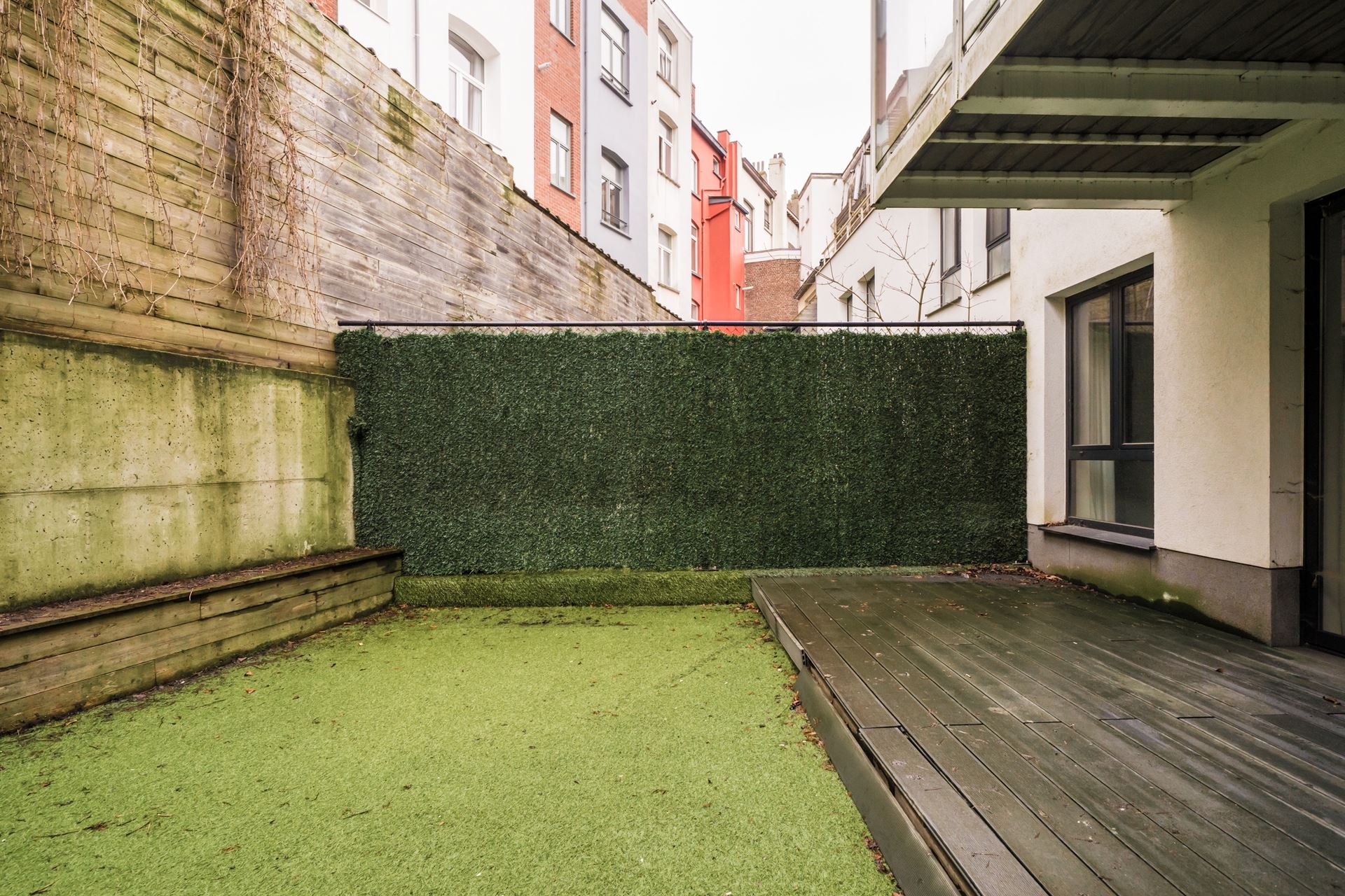 Beautiful, recent 3 bedroom duplex apartment on the ground and +1 floor, situated in a very good location in the European district. Spacious entrance hall with checkroom and separate toilet leading to a large, bright living space with adjoining fully fitted kitchen. Terrace with adjacent private garden (+/- 50m²). Upper floor landing with separate toilet. 2 bedrooms (15m² & 12m²) with shared shower room and a spacious master bedroom (26m²) with dressing and bathroom with bathtub and double sink. Private cellar. Parking space to purchase (+ € 35.000). Very good location in a quiet street, walking distance to public transport, European institutions, Metro, shops an...