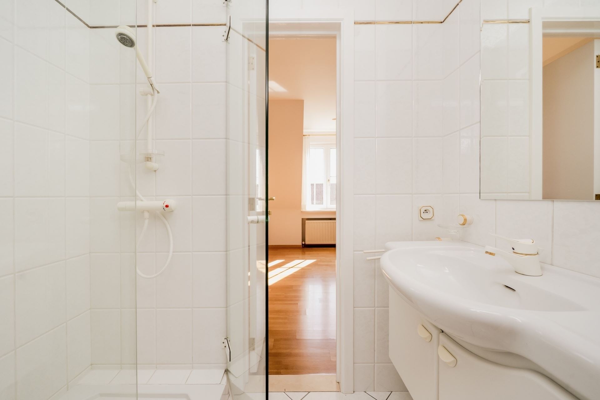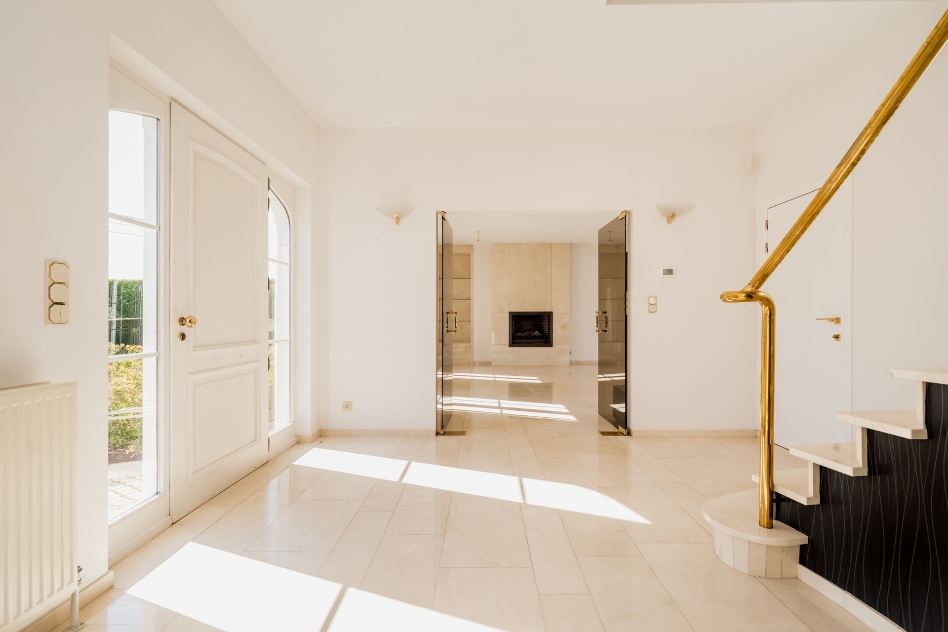 This home stands out due to its high-quality finishes: parquet floors, refined gold taps and spotlights, premium sanitary ware by Villeroy & Boch, and a cozy gas fireplace.