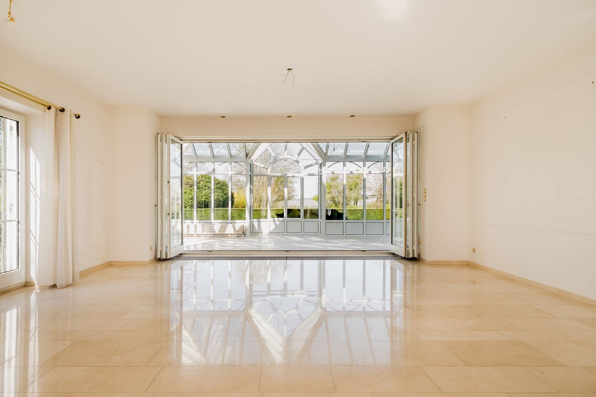 The generous living area exudes class and comfort and connects seamlessly to an elegant orangery. Here, you can enjoy a sunny terrace and breathtaking views of the green surroundings.
