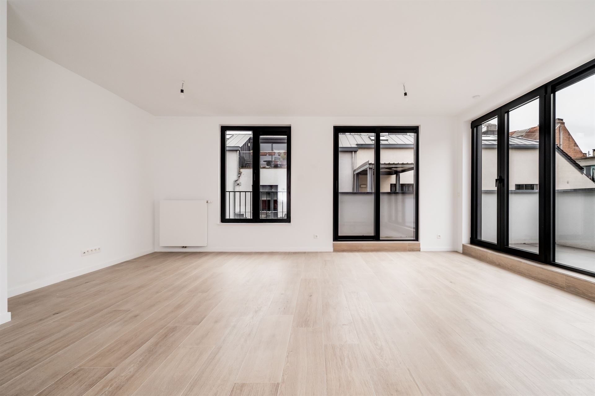 À proximité du site de Tour & Taxis, du gouvernement flamand, et de nombreuses facilités (Mobiscore 9,4/10), superbe appartement duplex penthouse neuf de type 3 chambres (+/- 148m2) avec terrasse (+/- 12.60 m2), libre immédiatement.