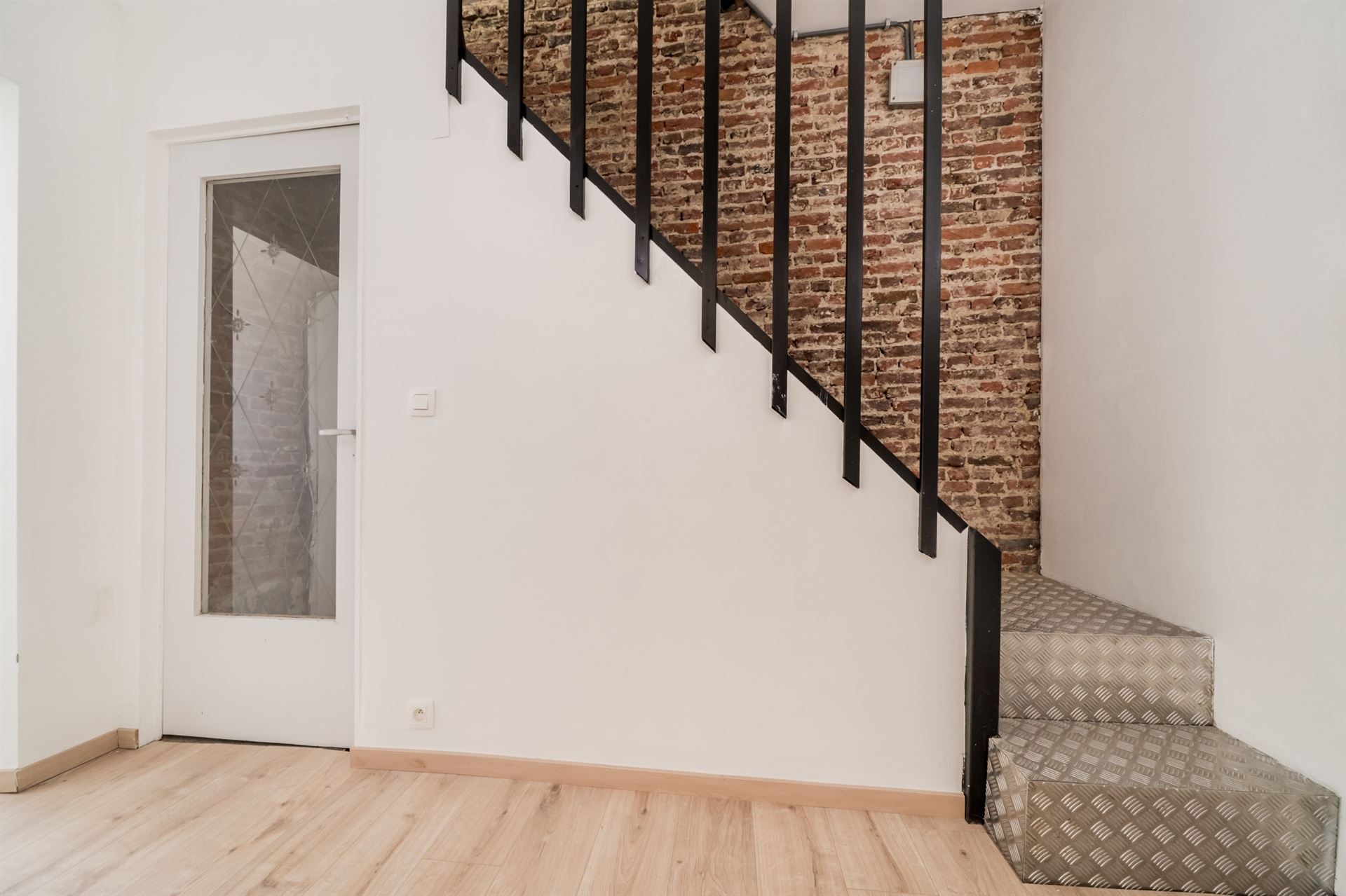 Dès l'entrée, vous pénétrez dans un hall d'entrée spacieux avec un escalier authentique et un mur d'accent en briques, qui attire l'attention et donne le ton pour le reste de la maison.