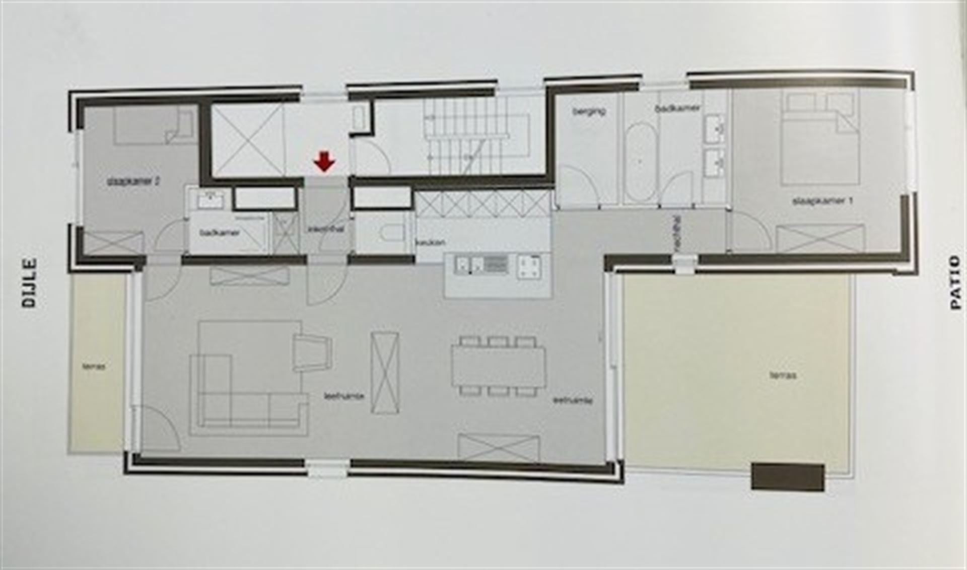 Au 5ème étage d'un immeuble de qualité sur Winketkaai se trouve cet exceptionnel appartement de deux chambres à coucher avec deux terrasses.