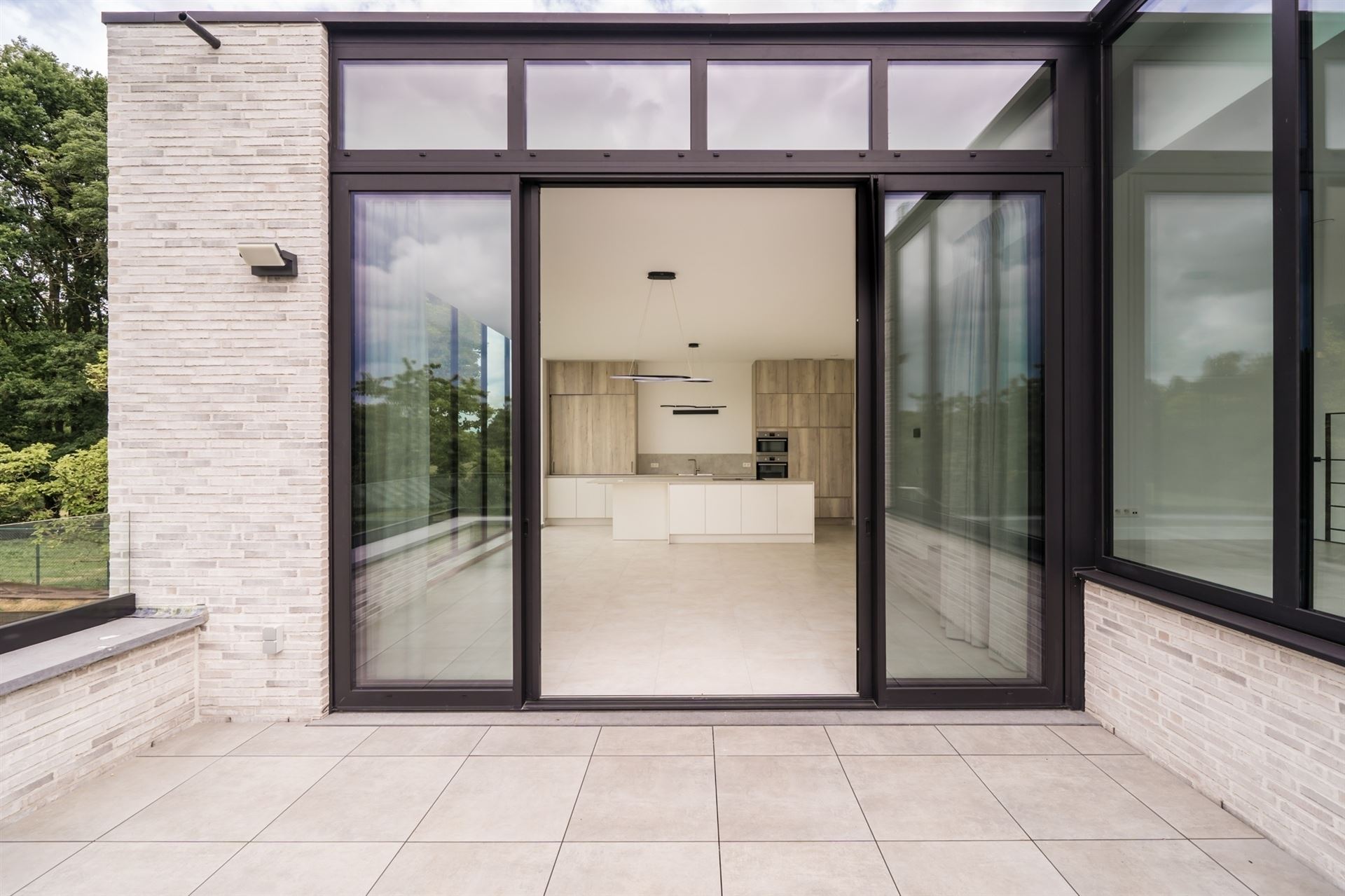 Unieke nieuwbouw villa met mogelijkheid tot het uitoefenen van een vrij beroep op een toplocatie, nabij de markt van Wemmel, de Ring 0, het UZ Jette en het Brugmann ziekenhuis. Ruime oprit en patio aan de voorzijde. Inkomhal met ingemaakte vestiaire en gasten toilet. Aparte ruimte met mezzanine (duplex) welke dienst kan doen als bureau of voor een vrij beroep. Op de eerste verdieping een prachtige lichtrijke leefruimte met volledig ingerichte open keuken en eetplaats welke uitgeeft op een ruim terras. Aansluitend aan de keuken een praktische berging. Via enkele trapjes bereikt men de zitkamer. op de gelijkvloerse verdieping bevinden zich 4 slaapkamers (waarvan 2 compacte) alsook een apart to...