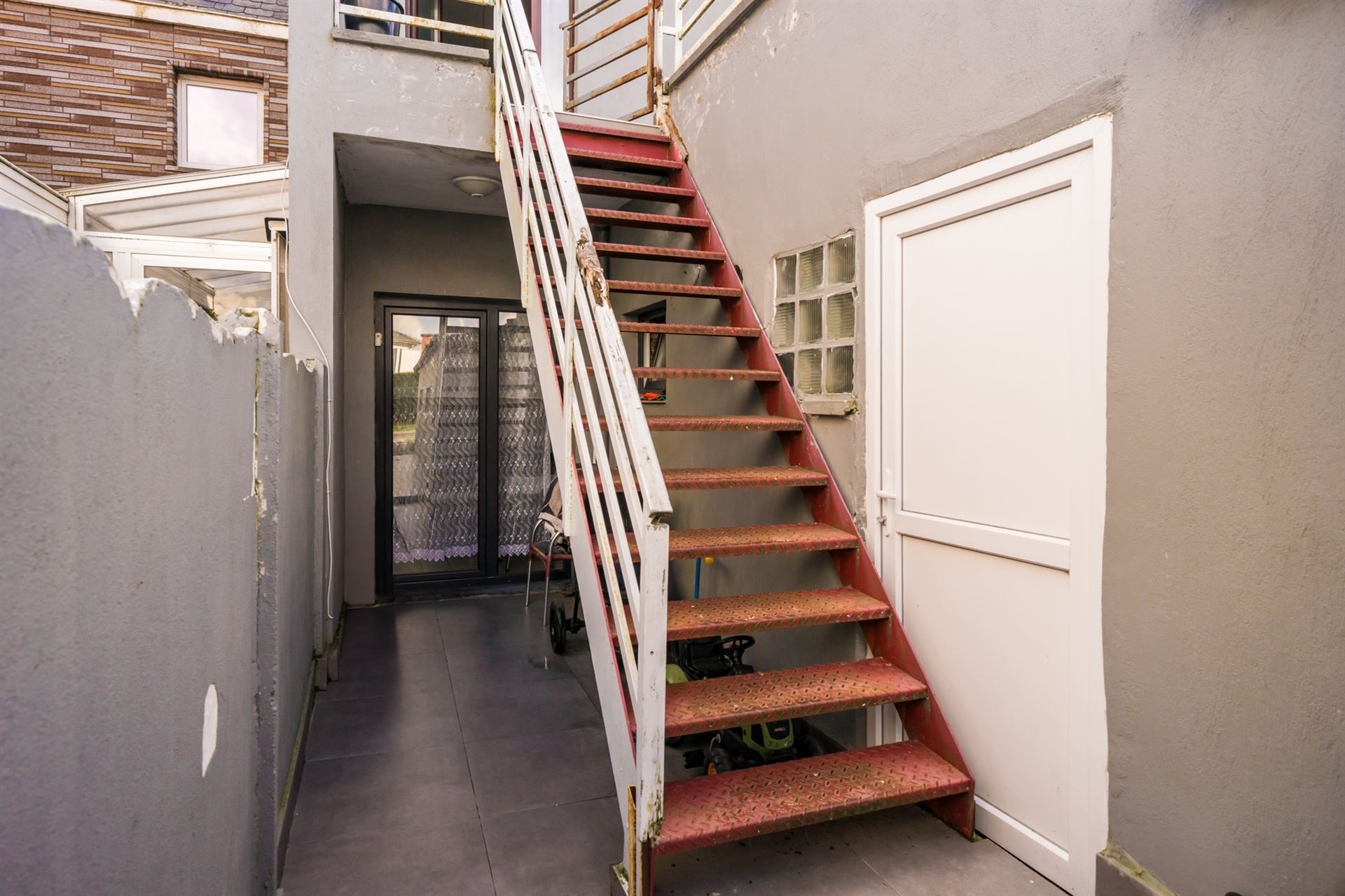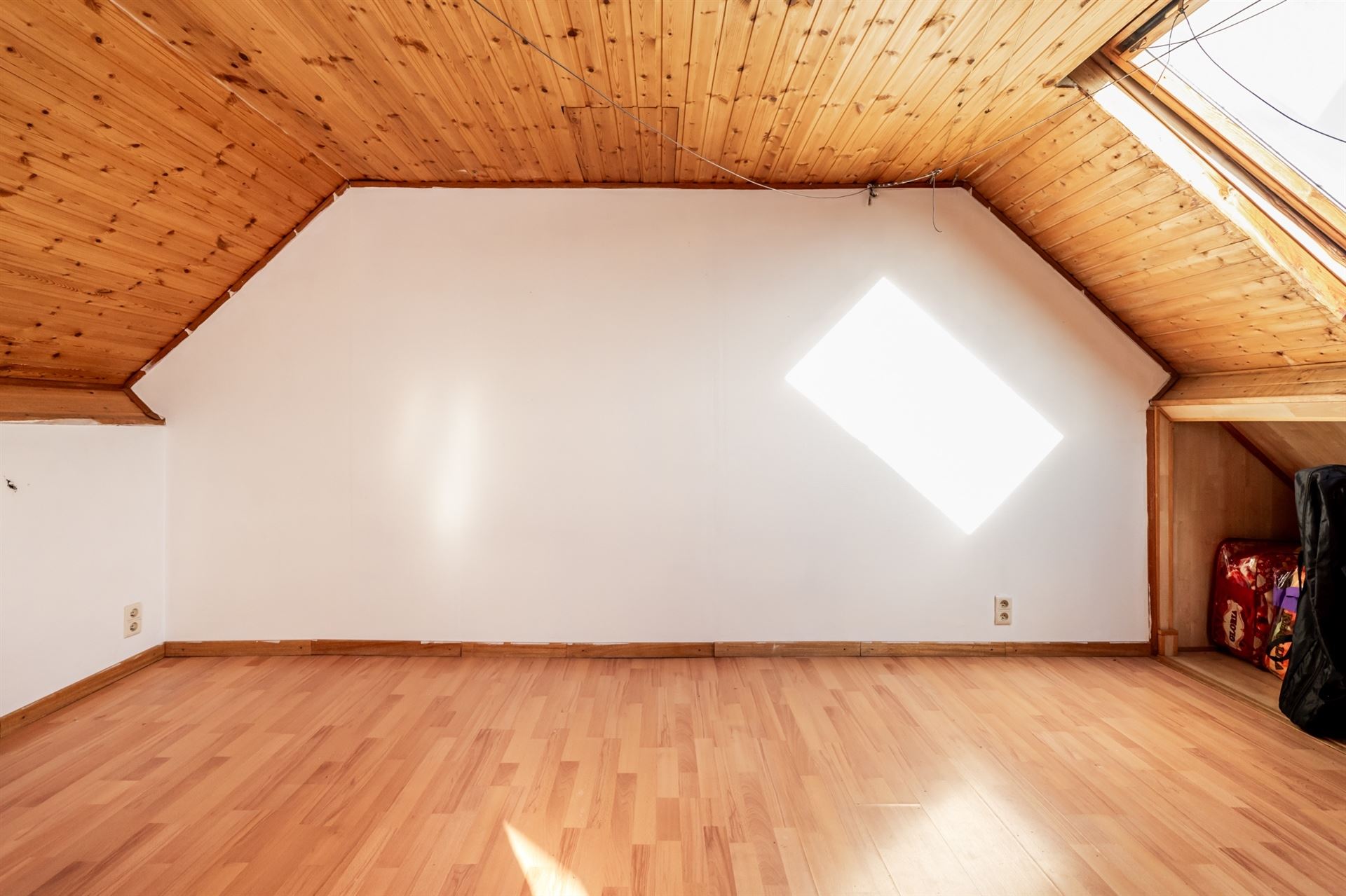 Zolderverdieping met vaste trap, momenteel ingericht als extra woonruimte met een keuken en een douchekamer. Deze ruimte biedt ook de mogelijkheid voor extra slaapkamers.Terras van 11 m², met een trap die toegang biedt tot de achterliggende garagebox.