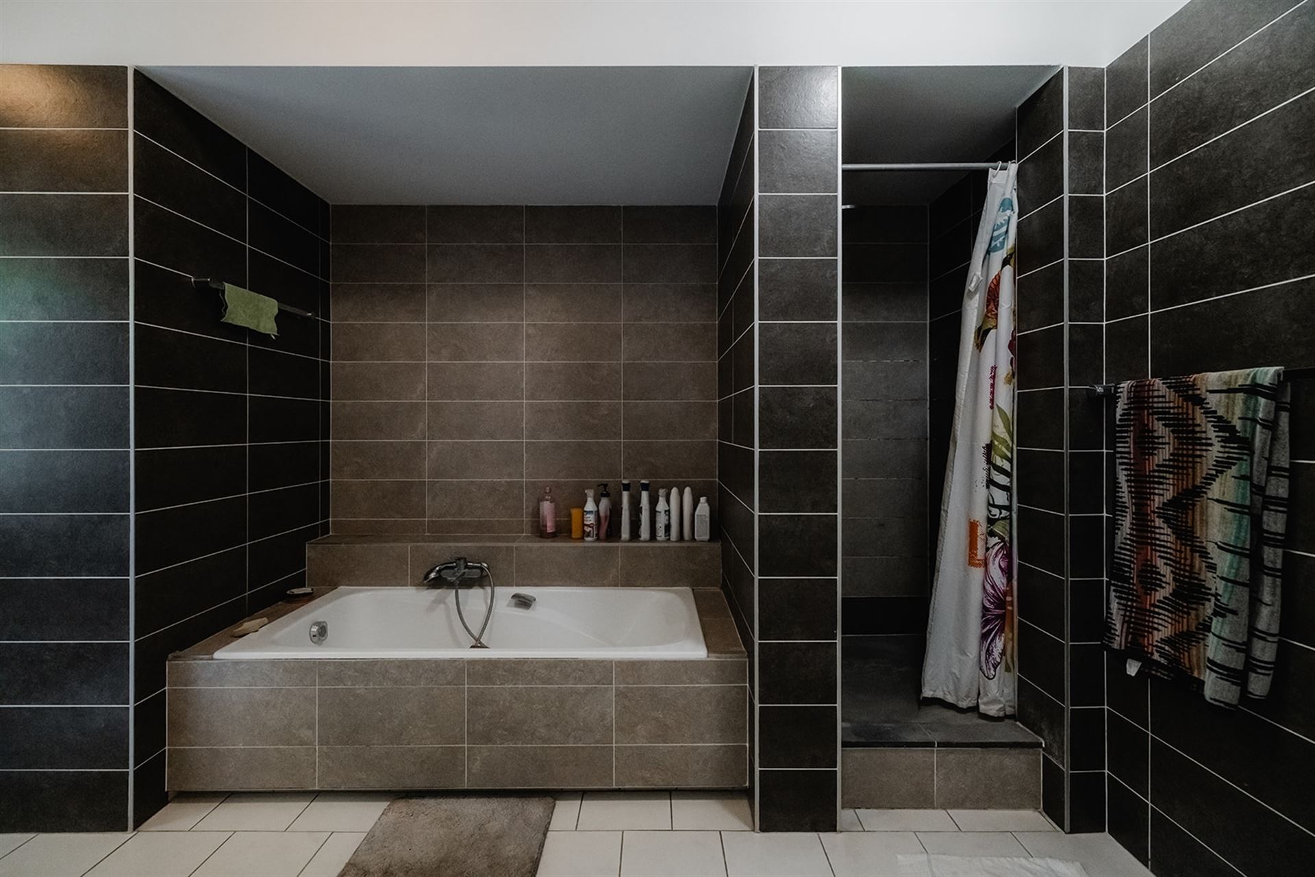 Deze exclusieve woning met 3 slaapkamers en een kantoor biedt: Een ruime inkomhal met vestiaire en apart toilet, een mooie grote L-vormige woonkamer met open haard, een terras en een grote tuin met dubbele toegang, een grote ingerichte keuken met eethoek, een verfijnd kantoor (ideaal voor een discrete werkruimte met hal en apart toilet), een nachthal met kasten die toegang geeft tot een master suite (hal, dressing, badkamer/douche en apart toilet) en twee mooie slaapkamers met eigen badkamer, een wasruimte en een bijkeuken die toegankelijk zijn vanuit de eetkamer, een kelder.