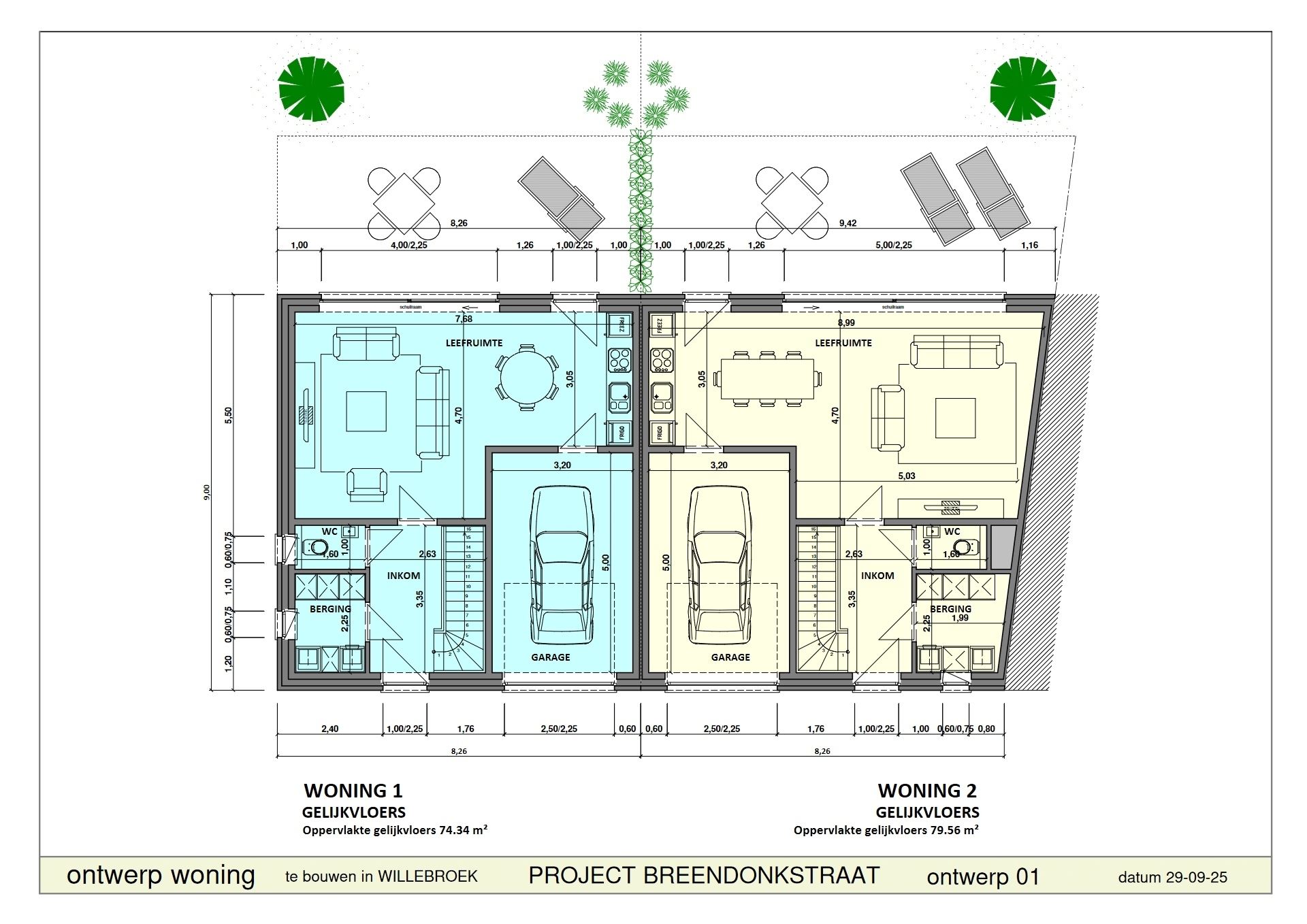 Het project omvat één halfopen en één gesloten bebouwing, elk met garage en een aangename tuin.
