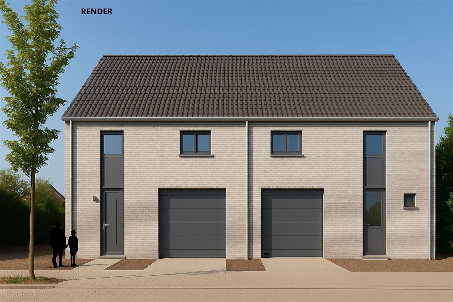Het project omvat één halfopen en één gesloten bebouwing, elk met garage en een aangename tuin.