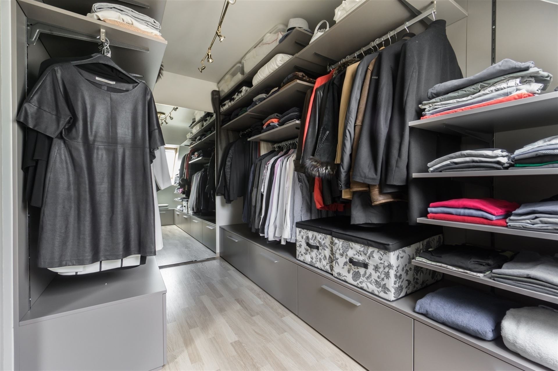 Het appartement telt twee volwaardige slaapkamers en een inloopdressing. De stijlvolle badkamer is volledig ingericht en beschikt over zowel een bad als een douche, aangevuld met een modern lavabomeubel. Verder is er een praktische berging voorzien voor wasmachine en droogkast, 1 gastentoilet, een vestiaire evenals een uitzonderlijk grote bergzolder die zorgt voor extra opbergmogelijkheden.